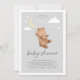A sweet watercolour bear, holding a moon shaped balloon. It is surrounded by stars and clouds - perfect for your teddy bear themed baby shower!