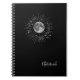 A unique abstract notebook featuring a cosmic moon and starburst design on a black background. Perfect for journalling, school notes, or as a thoughtful gift for dreamers, stargazers, and space lovers.”