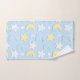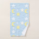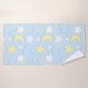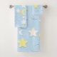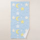 Moon and stars in soft yellow over a light blue sky background. Perfect for kids and babies, but good for anybody and anywhere.