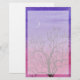 A watercolor of an interesting tree under the twilight crescent moon adorns this stationary!