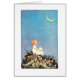 Moon wishes. Little girl sitting on a flowery hill at night, looking at the moon and the starry sky, making a wish. Cute vintage storybook illustration of Rhymes for Kindly Children: Modern Mother Goose Jingles, by Ethel Fairmont, 1916. Artist: Johnny Gruelle.