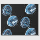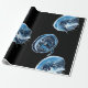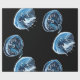 Moon jellyfish original watercolor fine art. Luminescent jelly fish on a black background.