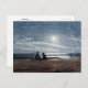 A fine art postcard with the painting by Winslow Homer (1836-1910), titled Moonlight (1874). A serene landscape of a couple sitting on the beach in the evening light of the moon.