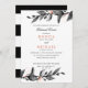 Elegant leaf and flower inspired wedding Rehearsal Dinner invitation design featuring a delicate branches of foliage in black, grey pink and coral set on a white background.