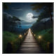 A calming night‑scene featuring a lantern‑lit wooden pathway, lush forest greenery, and a glowing full moon over distant mountains. Perfect for journaling, planning, creative writing, or gifting to anyone who loves peaceful landscapes and nature‑inspired art.
