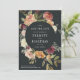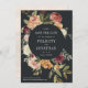Our modern floral Moonlight Garden save the date card frames your key wedding details, including date and location, inside a lush botanical border of watercolor roses mums, green leaves and foliage. Dusty autumn hues of burgundy, marsala, blush and ivory pop against a soft off-black background. Personalise with your names, wedding date, location and wedding website using the fields provided.