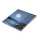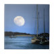 Sailboats tied up in the harbour on moorings, during a moonlit night. A pretty and peaceful art tile.