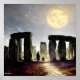 Beautiful digital art square poster created using AI rendering software featuring a moonlit night at the mystical Stonehenge formation.