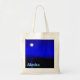 Moonrise in the Inside Passage off the coat of Alaska. Mountains in the distance and a fishing boat heads north. Text reading "Alaska" appears in glowing blue and white.
