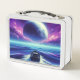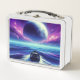This is a standard metal lunchbox that appears to work just fine. We designed this box ourselves with an uploaded photo and custom text on the front and back. It looks absolutely beautiful except the front of the lunchbox is not centered like it shows in the photo. The print borders don't align with the inset flat part of the box where the preview photo online showed it perfectly centered in there. The back looks nice and centered though.