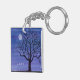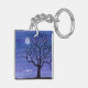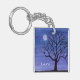 A watercolor painting of a lovely tree silhouetted under a full moon adorns this customisable keychain!