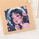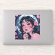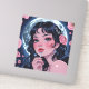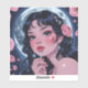 A whimsical sticker featuring a serene, moonlit scene. The design showcases a dreamy young woman with dark, flowing hair adorned with pink flowers and sparkling jewellery. She gently holds a silver spoon near her lips, her soft expression framed by a glowing full moon and delicate pink poppies. The deep blue night sky, dotted with stars, adds a magical touch, making this sticker a perfect blend of elegance and mystery.