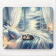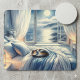 Moonlit Coastal Bedroom with Sleeping Cat Mouse Pad
