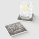 The coasters are gorgeous, a quality feel and heavy weight. They look like a precious archeological find. A rustic stone juxtaposed with a modern floral black and white print. I like the way the print goes slightly imperfect on the cut stone edges giving them a kind-of natural beauty.