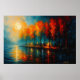 Immerse yourself in the luminous beauty of “Moonlit Ember Grove: Autumn Reflections Under a Golden Sky”, a captivating abstract landscape painting that blends cosmic serenity with fiery seasonal vibrance. This expressive artwork features a glowing full moon casting golden light across a tranquil lake, where reflections of crimson, orange, and yellow autumn trees shimmer against a deep blue night sky. Bold brushstrokes and rich textures evoke emotion and mystery, making it a perfect centerpiece for collectors of moonlit forest art, autumn landscape paintings, or romantic nature scenes. Ideal for gallery walls, cozy interiors, or modern spaces seeking warmth and depth.