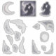 A beautiful set of celestial woodland wedding stickers featuring silver crescent moon motifs, delicate botanical engraving sprigs, and mini wreath elements. Perfect for sealing invitations, decorating favors, or enhancing reception decor with a cohesive moon and forest theme.