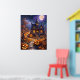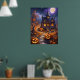 Step into a whimsical Halloween night with this enchanting poster. Featuring a Victorian-style haunted house bathed in the glow of a full moon, this artwork captures the essence of spooky charm. The house, perched on a hill, is surrounded by carved pumpkins, bare trees, and autumn leaves, creating a perfect Halloween atmosphere. Bats flutter against the moonlit sky, adding to the eerie yet magical feel of the scene. Perfect for Halloween enthusiasts and lovers of fantasy art, this poster will add a touch of spooky elegance to any space.