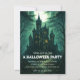 Set the scene for a night of fright with this haunted mansion Halloween invitation. Featuring an eerie green-lit castle under a glowing full moon, surrounded by mist and shadowy trees, it’s the perfect way to welcome guests to your spooky celebration. The dark, atmospheric design instantly sets the tone for costumes, chills, and thrills. Fully customisable with your event details, this high-quality card is ideal for haunted house gatherings, costume parties, or any Halloween event that calls for a touch of mystery.