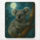 A quiet moment unfolds beneath a star-speckled sky in this dreamy wildlife art print featuring a koala perched on a tree branch. Illuminated by the soft glow of a full moon, the koala’s textured fur and expressive eyes reflect both curiosity and calm. Fireflies drift gently through the night air, while lush green leaves and vibrant blossoms frame the scene with colour and life.