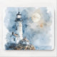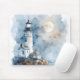 Moonlit Lighthouse on Rocky Coastline Mouse Pad