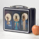 This is a standard metal lunchbox that appears to work just fine. We designed this box ourselves with an uploaded photo and custom text on the front and back. It looks absolutely beautiful except the front of the lunchbox is not centered like it shows in the photo. The print borders don't align with the inset flat part of the box where the preview photo online showed it perfectly centered in there. The back looks nice and centered though.