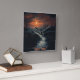 Immerse yourself in the chilling atmosphere of "Moonlit Menace: The Haunted Black Forest at Dusk" as this wall art transports you to a spine-tingling realm. The orange haze moon casts an ethereal glow, illuminating the foreboding silhouette of the eerie black forest, where unseen terrors lurk and the veil between worlds grows thin.
