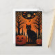 A sleek black cat sits perched beneath a glowing full moon, casting an enigmatic silhouette against the vibrant orange sky. Silhouetted trees and pumpkins scattered below add a touch of whimsy to the scene. Did you know that in ancient Egypt, cats were revered as sacred animals and were often associated with the goddess Bastet, who represented protection, pleasure, and good health? This artwork captures the mystique of Halloween night and the feline's enduring connection to the supernatural.