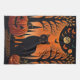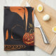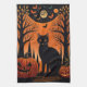 A sleek black cat sits perched beneath a glowing full moon, casting an enigmatic silhouette against the vibrant orange sky. Silhouetted trees and pumpkins scattered below add a touch of whimsy to the scene. Did you know that in ancient Egypt, cats were revered as sacred animals and were often associated with the goddess Bastet, who represented protection, pleasure, and good health? This artwork captures the mystique of Halloween night and the feline's enduring connection to the supernatural.