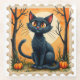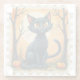 With glowing orange eyes and a gaze full of secrets, this fluffy feline sits beneath a pale moon in a pumpkin-strewn field—ready to guard your drink and stir a little seasonal magic. Styled like a vintage stamp and rich in autumn tones, this glass coaster is perfect for Halloween lovers, cat fans, and anyone who enjoys a touch of whimsy with their witchy vibes.