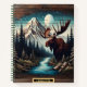 A majestic moose stands gracefully by a serene river, framed by towering mountains and a bright full moon, exuding a tranquil wilderness spirit.
