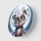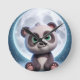 "A tiny, adorable panda stands in front of a majestic full moon, surrounded by a twinkling night sky. The panda's soft pink-grey fur and big green eyes shine with a gentle light, as if they're basking in the magic of the moon."