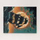 A dramatic tall ship with dark sails cuts through crashing waves beneath a huge glowing full moon and turbulent clouds. Rich teal and burnt orange tones create a bold, cinematic seascape filled with flying seabirds and a sense of adventure on the high seas. Perfect for pirate fans, ocean lovers, and anyone who enjoys moody nautical artwork on puzzles, prints, or decor pieces.