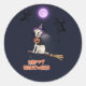 Moonlit Pup – Halloween Dog in Witch Hat Classic Round Sticker