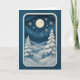 A winding river cuts through snowy hills beneath a glowing full moon in this layered papercut-style illustration. Stylised pine trees, falling snowflakes, and distant mountain silhouettes create a serene winter landscape rendered in soft blues and whites. The star-filled sky and intricate snowflake details evoke quiet wonder and emotional stillness.