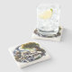 The coasters are gorgeous, a quality feel and heavy weight. They look like a precious archeological find. A rustic stone juxtaposed with a modern floral black and white print. I like the way the print goes slightly imperfect on the cut stone edges giving them a kind-of natural beauty.
