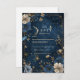 This enchanting celestial wedding design blends a deep midnight sky with glowing golden stars, soft moonlight, and richly detailed florals for a strikingly romantic aesthetic. The painted night sky creates a magical atmosphere, while the gold botanical accents add luxurious warmth and depth. Perfect for couples seeking an elegant celestial theme with a touch of whimsy and artful sophistication.