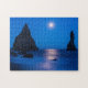Moonrise Reflection | Iceland, Reynisdrangur Jigsaw Puzzle