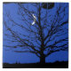 "Moon Shadows" print - Digital art print of tree silhouette against a night sky with crescent moon. An interplay of light and shadow in deep blue, black and white.