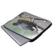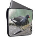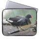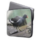 This awesome laptop bag features a photograph of a Moorhen, a pretty water bird with a distinctive yellow-tipped red beak found in Great Britain. This individual is standing on the bank of a calm lake perhaps enjoying the summer sunshine.
