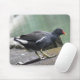 This mousepad features a photograph of a Moorhen, a pretty water bird with a distinctive yellow-tipped red beak found in Great Britain. This individual is standing on the bank of a calm lake perhaps enjoying the summer sunshine.