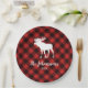 Moose and Buffalo Red and Black Plaid Christmas Paper Plate