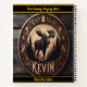 A beautifully carved wooden plaque features a majestic moose, surrounded by intricate designs and personalised with the name Kevin.