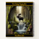 A stunning moose stands gracefully near a tranquil waterfall, surrounded by lush greenery and towering trees in a peaceful forest setting.