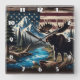 Moose by Lake With Mountain and Flag Background Square Wall Clock