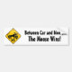Between car and moose, the moose wins! A funny moose crossing bumper sticker. Remind the drivers behind you to look out for moose. Funny outdoor themed design.