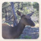 A drink coaster featuring a photo of a moose.