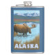 Moose Drinking Water Vintage Travel Poster Hip Flask