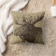 Moose Elk Head Faux Linen Burlap Throw Pillow