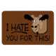 A moose isn't too impressed having his head mounted on a plaque. A funny design for hunters and animal rights folks.