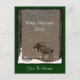 Vintage John Bauer artwork depicting a moose standing in the snow between two trees.